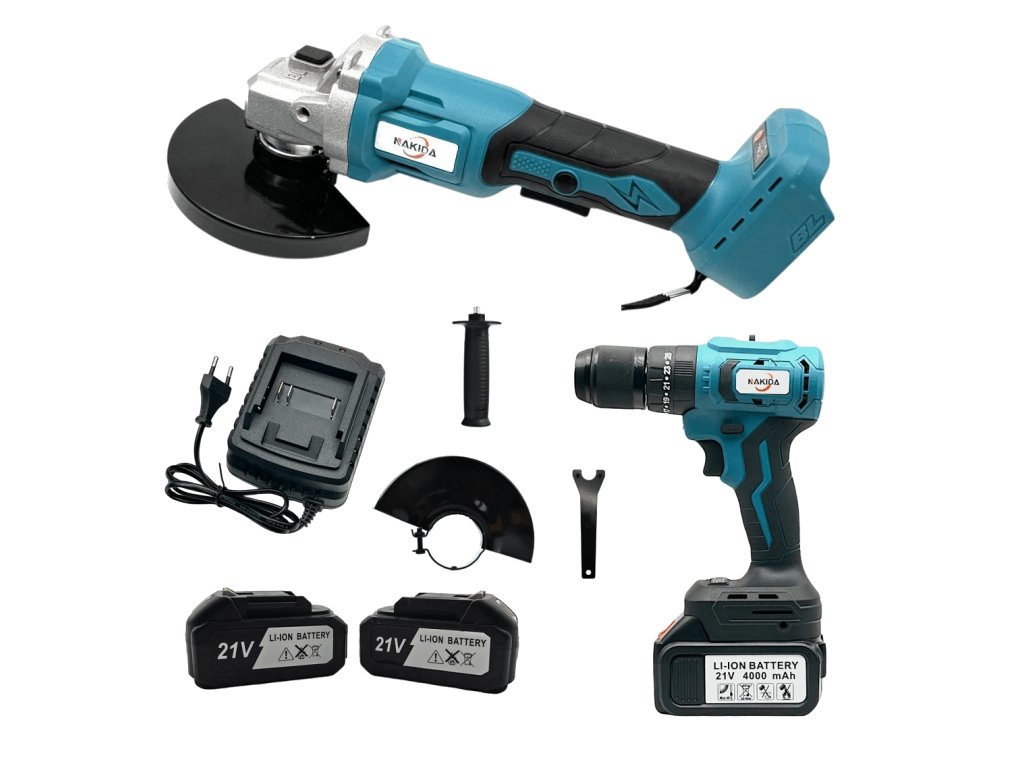 Kompletní sada aku nářadí značky NAKIDA je ideální volbou pro každodenní hobby použití i náročnější práce v domácí dílně. Sada obsahuje aku vrtačku, úhlovou brusku, dvě výkonné 21V Li-ion baterie s kapacitou 4,0 Ah, rychlonabíječku a praktický přepravní kufr.