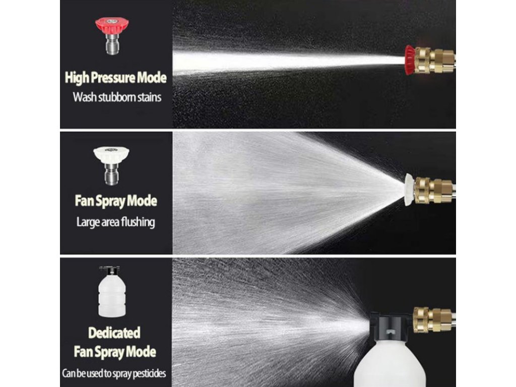 Trysky v sadě vám umožní upravit proud podle potřeby.