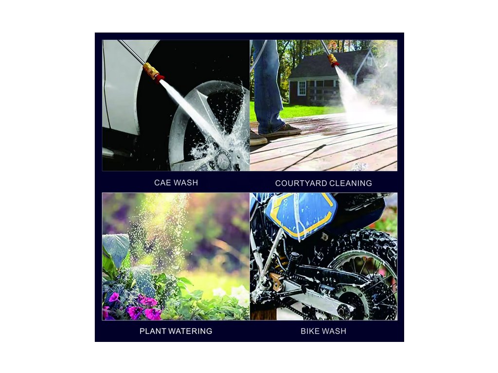 - použití je hmotnost: mytí auta, opláchnutí kola, zalévání rostlin z nádob na dešťovou vodu, mytí oken, fasád atd.