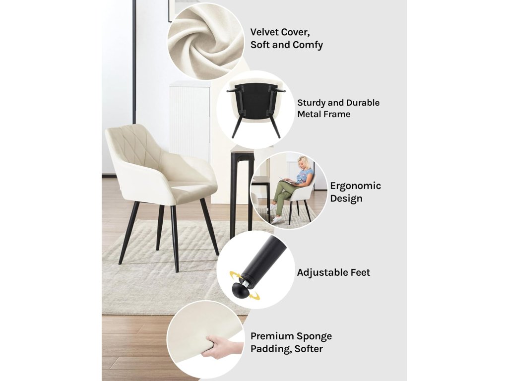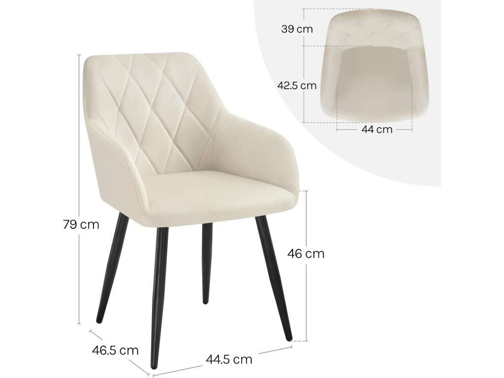 Designová jídelní židle WOLTU BH352cm-1 se sametovým potahem, opěrkami a kovovými nohami – bílá
