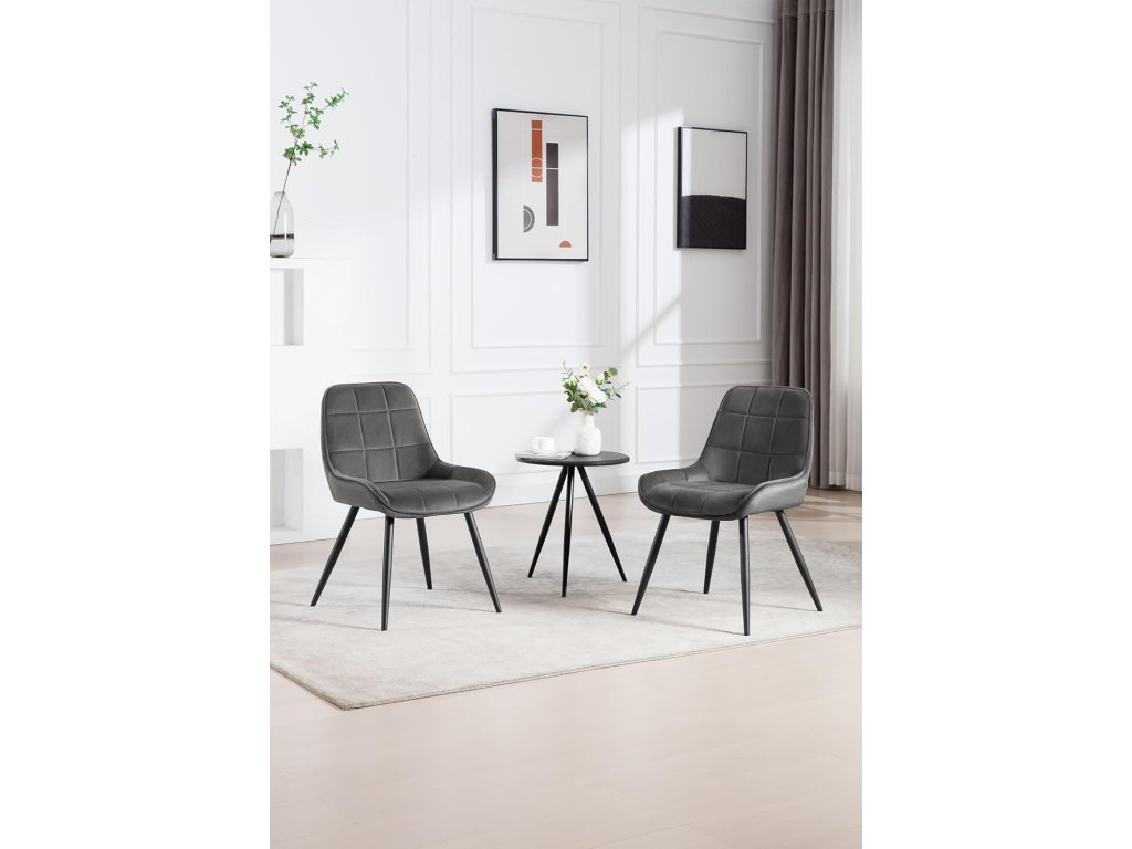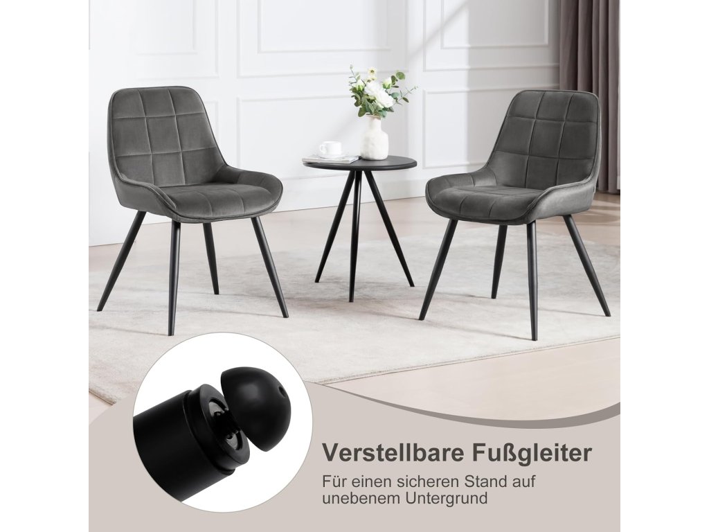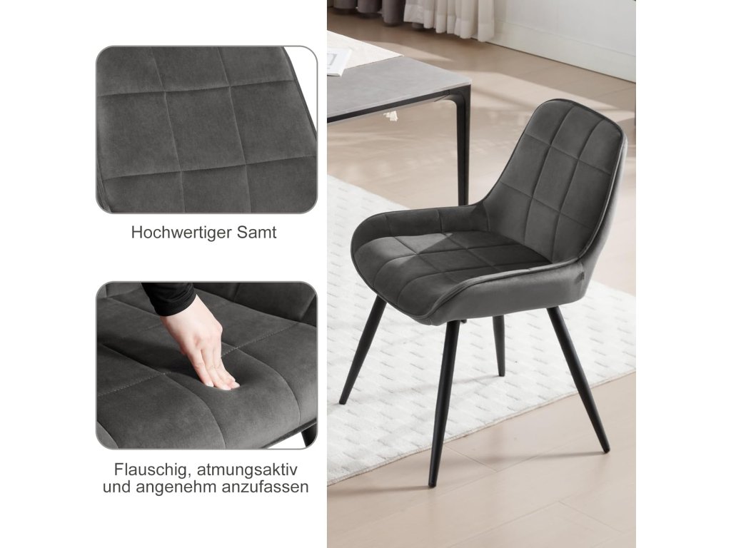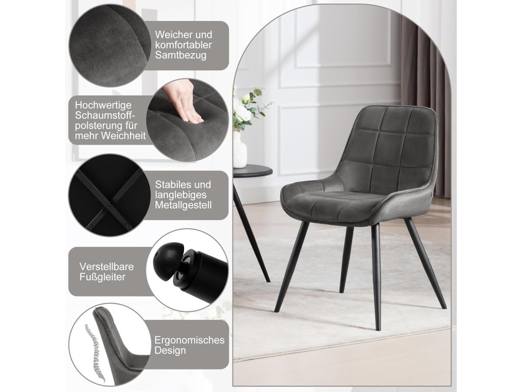 Sada 2 čalouněných jídelních židlí z sametu s ergonomickou opěrkou, tmavě šedá
